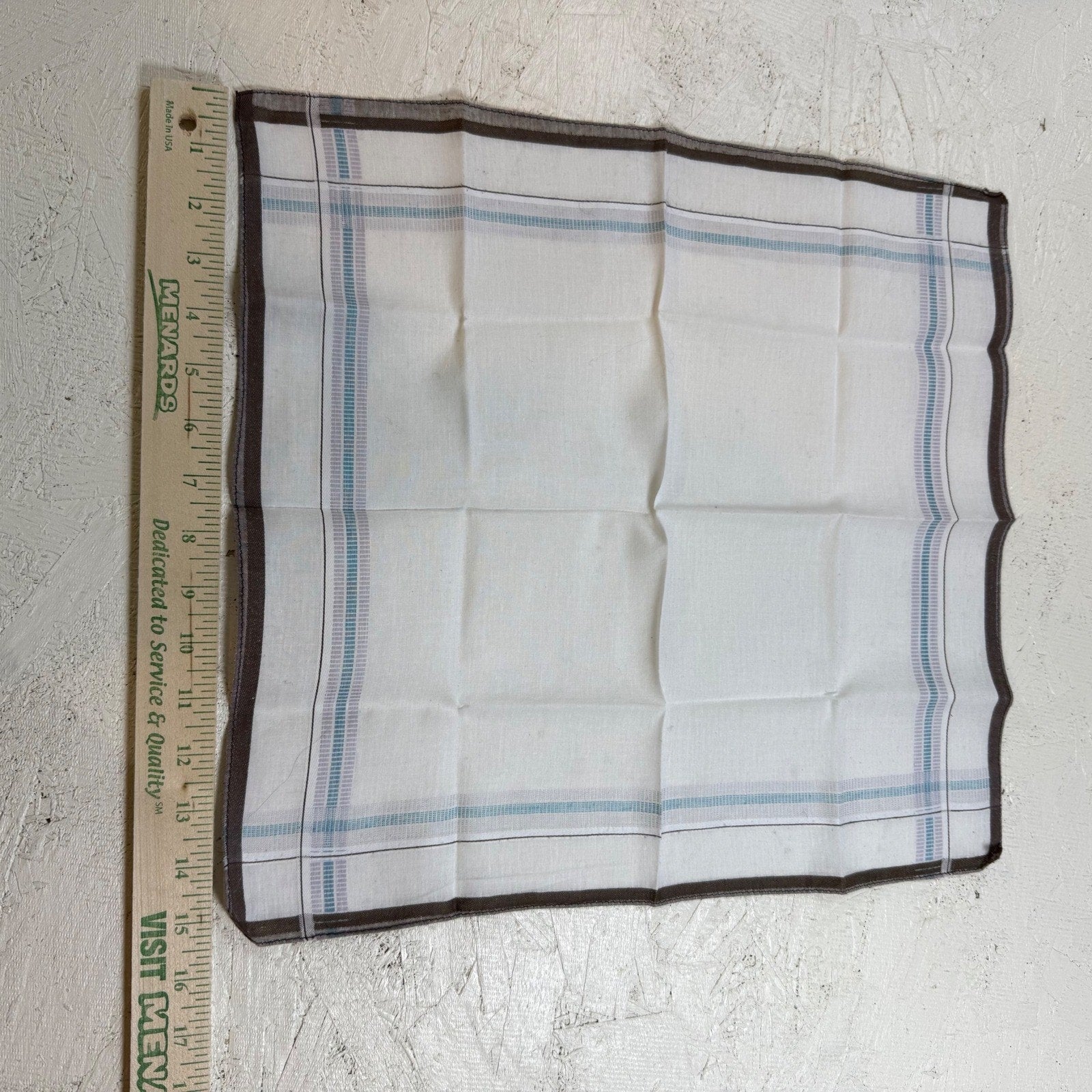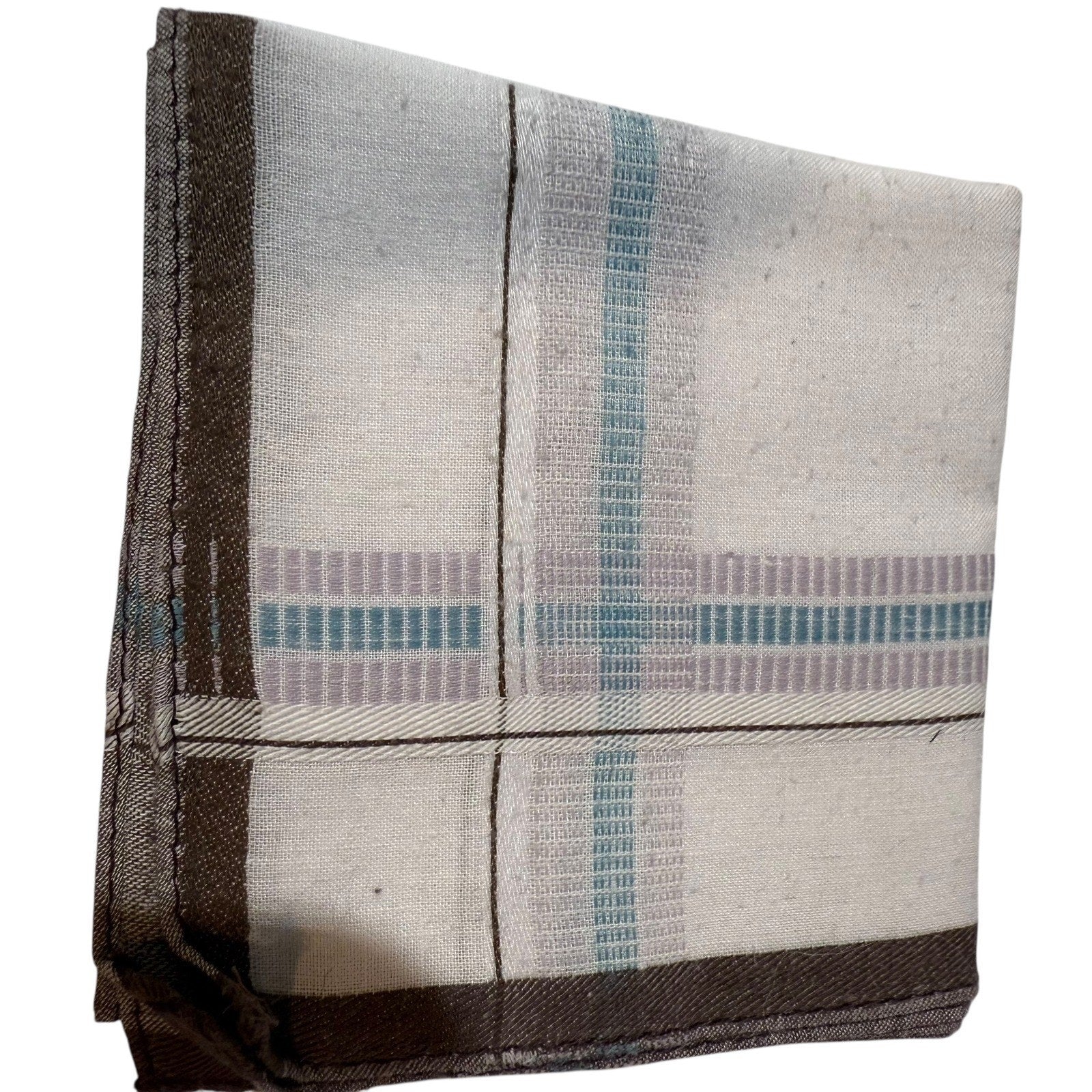 Men's Cotton Pocket Square Handkerchief 17x17 White Blue Stripe Brown Border