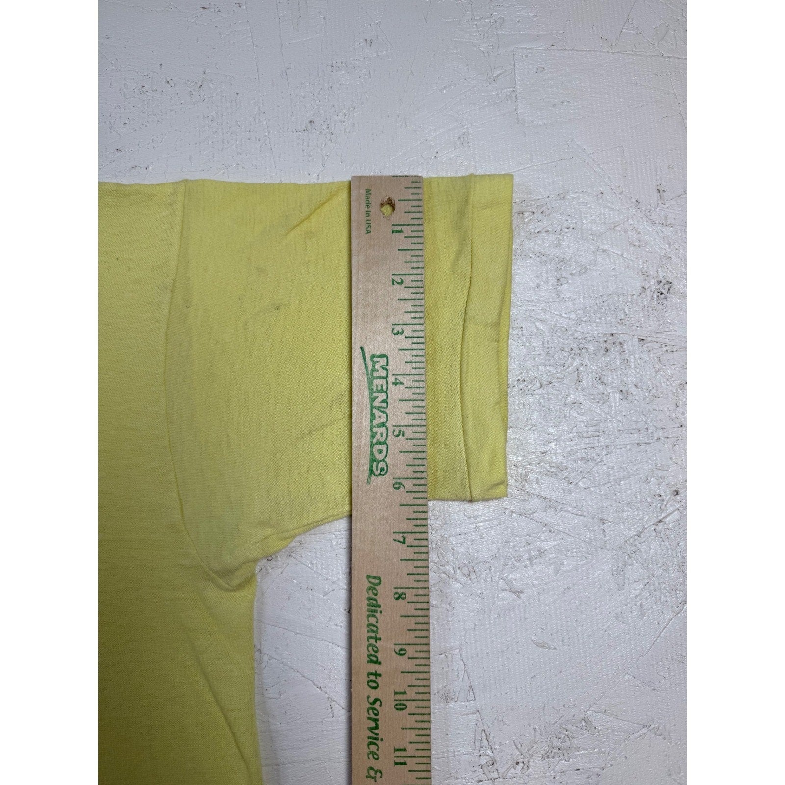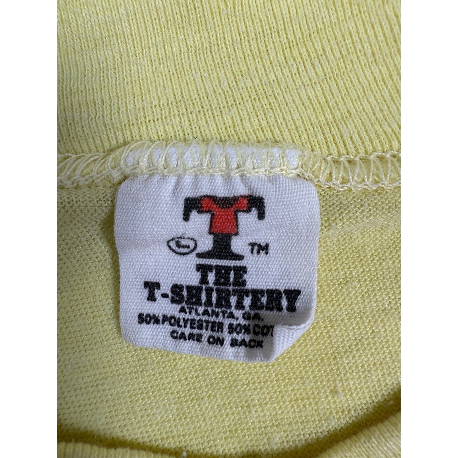 Soft, lightweight 50/50 yellow blank from The T-Shirtery, Atlanta — period-correct and hard to find in wearable condition.